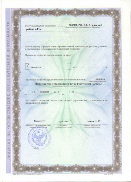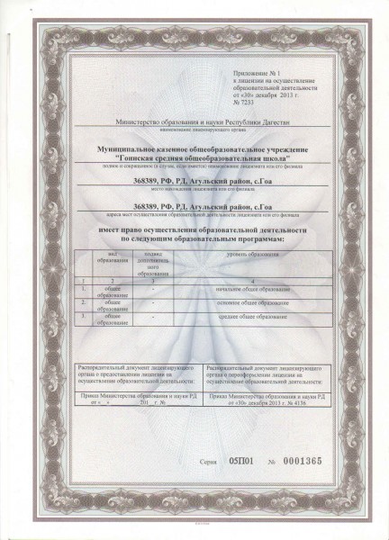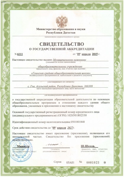 | Адрес местонахождения образовательной организации* | 368389, РД, Агульский район, с. Гоа. |